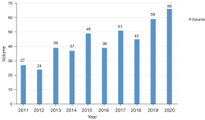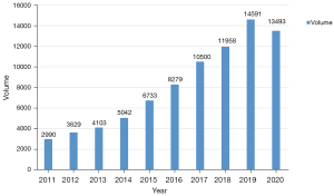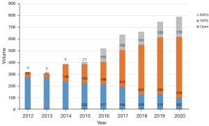 In summary, the thoracic surgery team at the Shanghai Chest Hospital has successfully come through the unprecedented COVID-19 pandemic and continuously provided high-level medical care and services for our patients in the year 2020. Hopefully, this year’s annual report from the Shanghai Chest Hospital can again serve as a useful reference for colleagues worldwide.